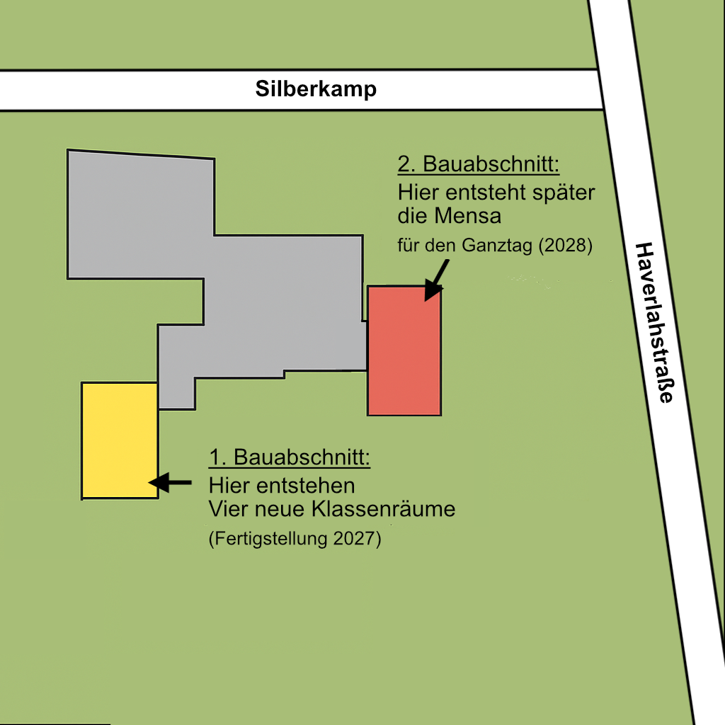 Im zweiten Bauabschnitt entsteht eine Mensa, die den Weg zur Ganztagsschule ermöglicht. Damit wird der gesetzliche Anspruch auf ganztägige Betreuung auch in Ringelheim umgesetzt.